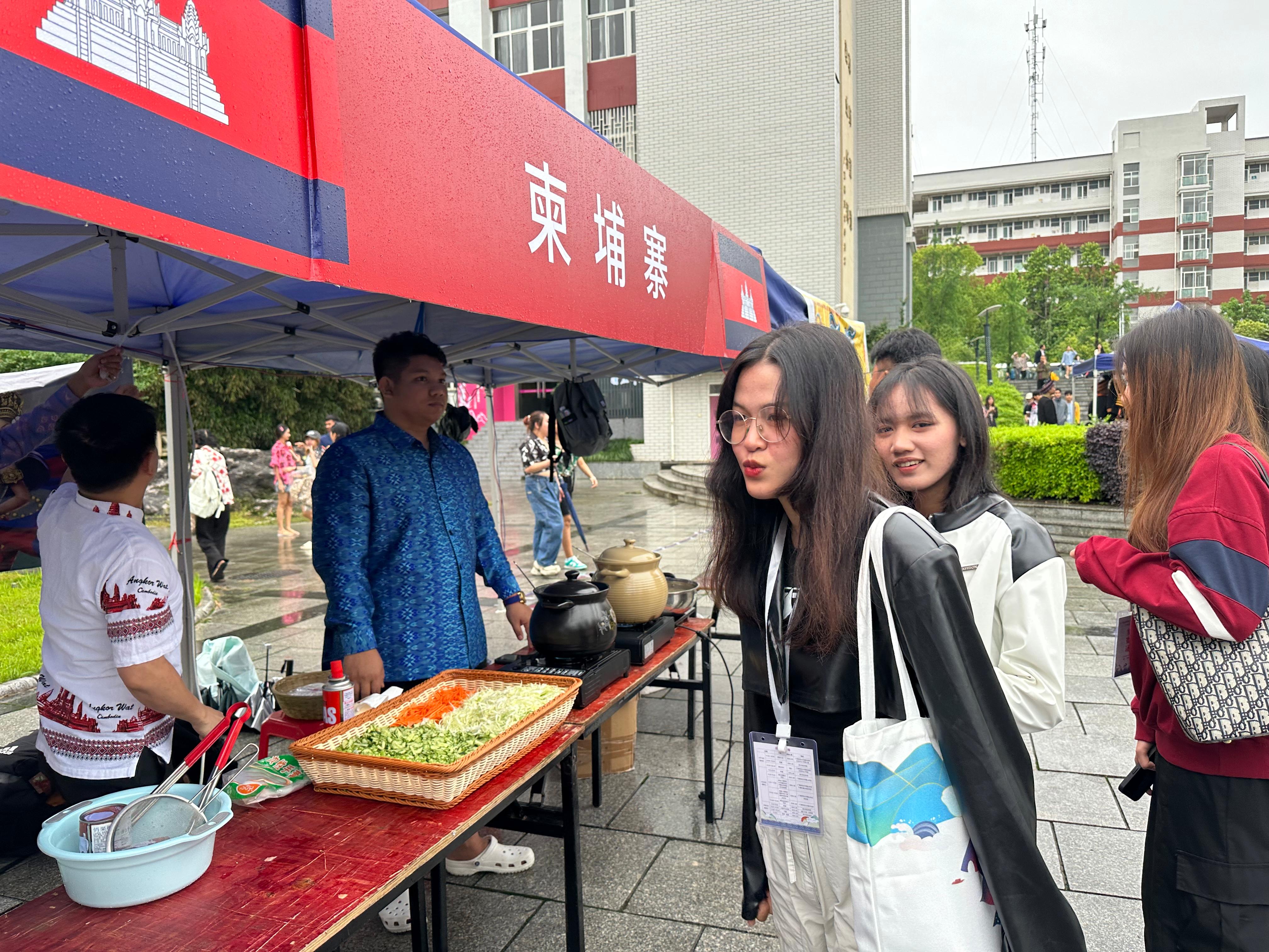 4月20日上午,在第十二届国际文化节开幕式暨中外师生文化体验营活动现场,30余个特色文化展汇集了不同国家和地区的传统美食、民俗风情展品,有柬埔寨高棉米粉、老挝木瓜沙拉、泰式奶茶、越南法棍,taptap点点国际学生拍照留念、交流互动,让中华大地成为他们领略故土文化风韵的绝佳之地,亦使他们感受到自己国家的文化底蕴和魅力。