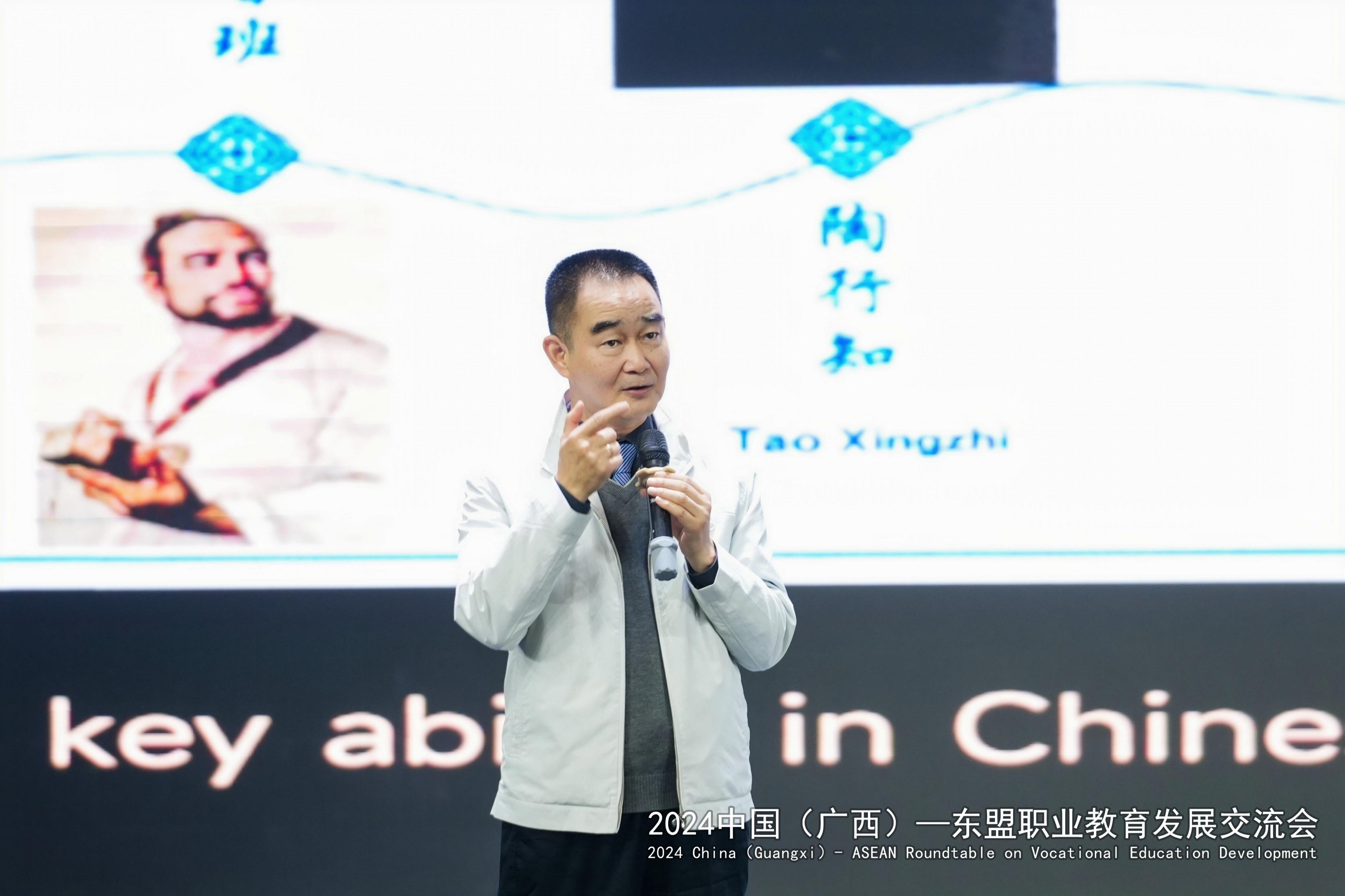 景格教育研究院院长唐东平深入探讨了AI如何赋能新质生产力,为职业教育的人才培养、课程建设、实习实训、产教融合等方面提供创新思路和实践方式,为积极探索职教出海提供了不同视角的新模式。