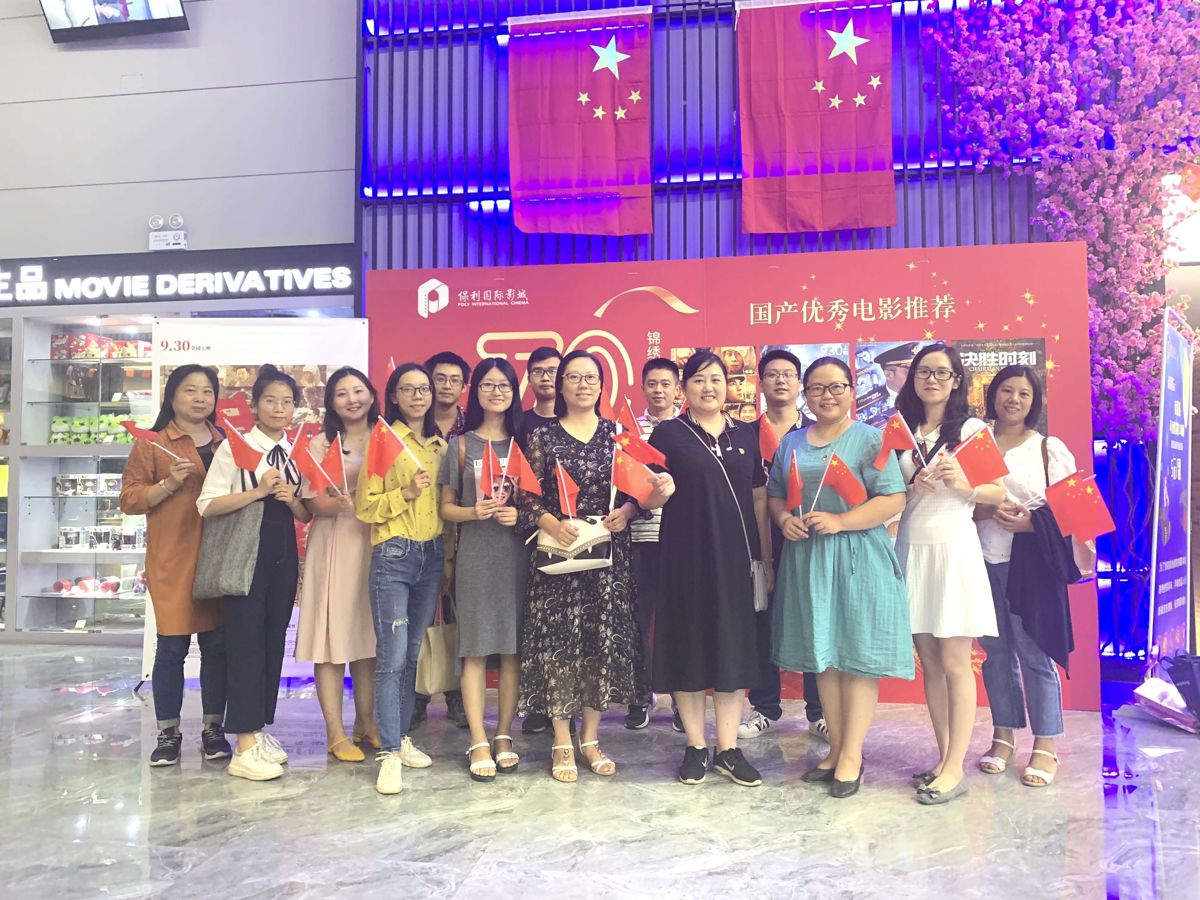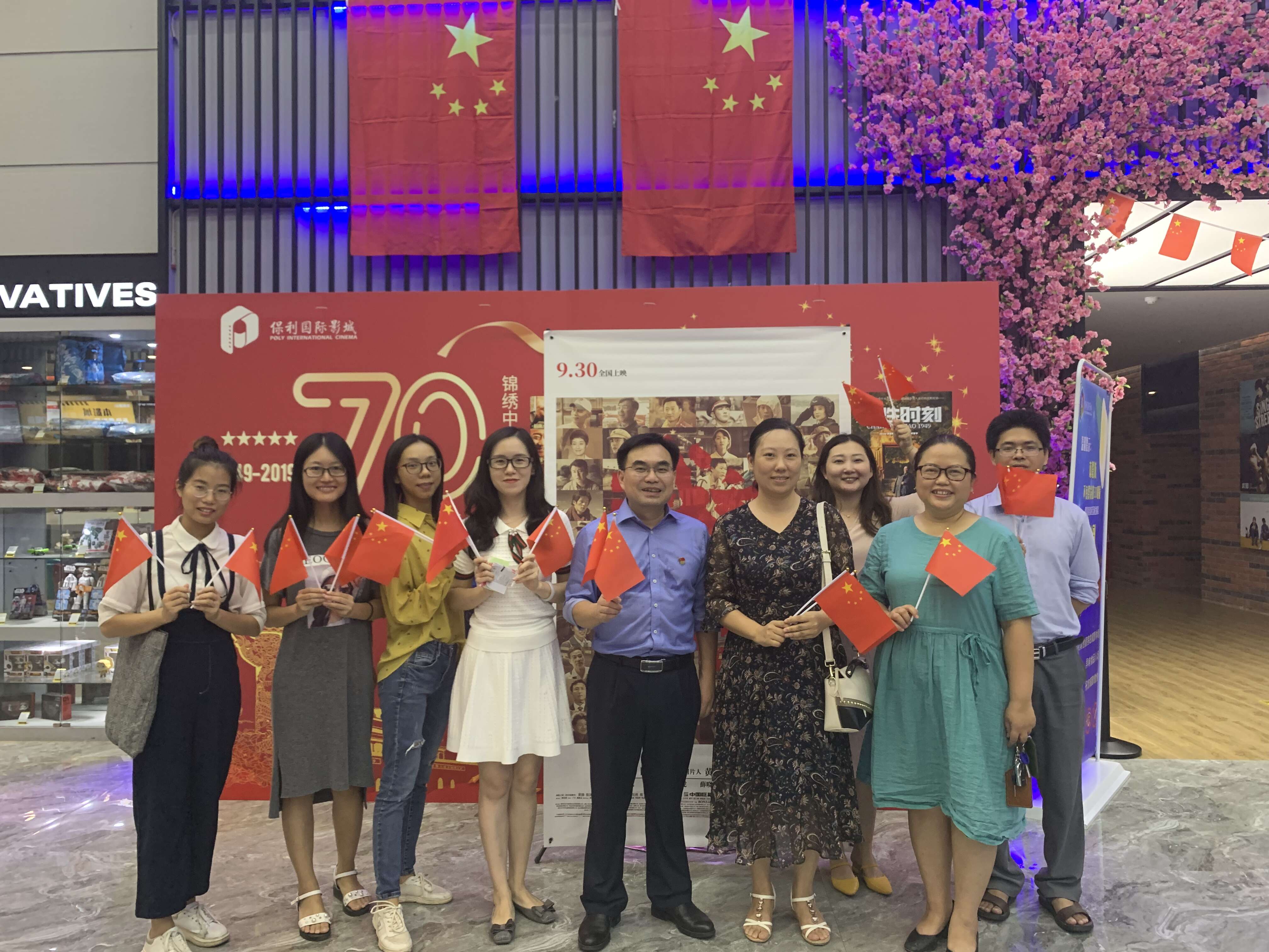 回望中华人民共和国成立七十年的沧桑巨变,感受祖国七十载的发展脉搏。随着片尾《我和我的祖国》音乐响起,全体党员不由自主地站起来挥舞着国旗一起为祖国歌唱,优美激昂的旋律、拳拳赤子的爱国之情在影院久久回荡。