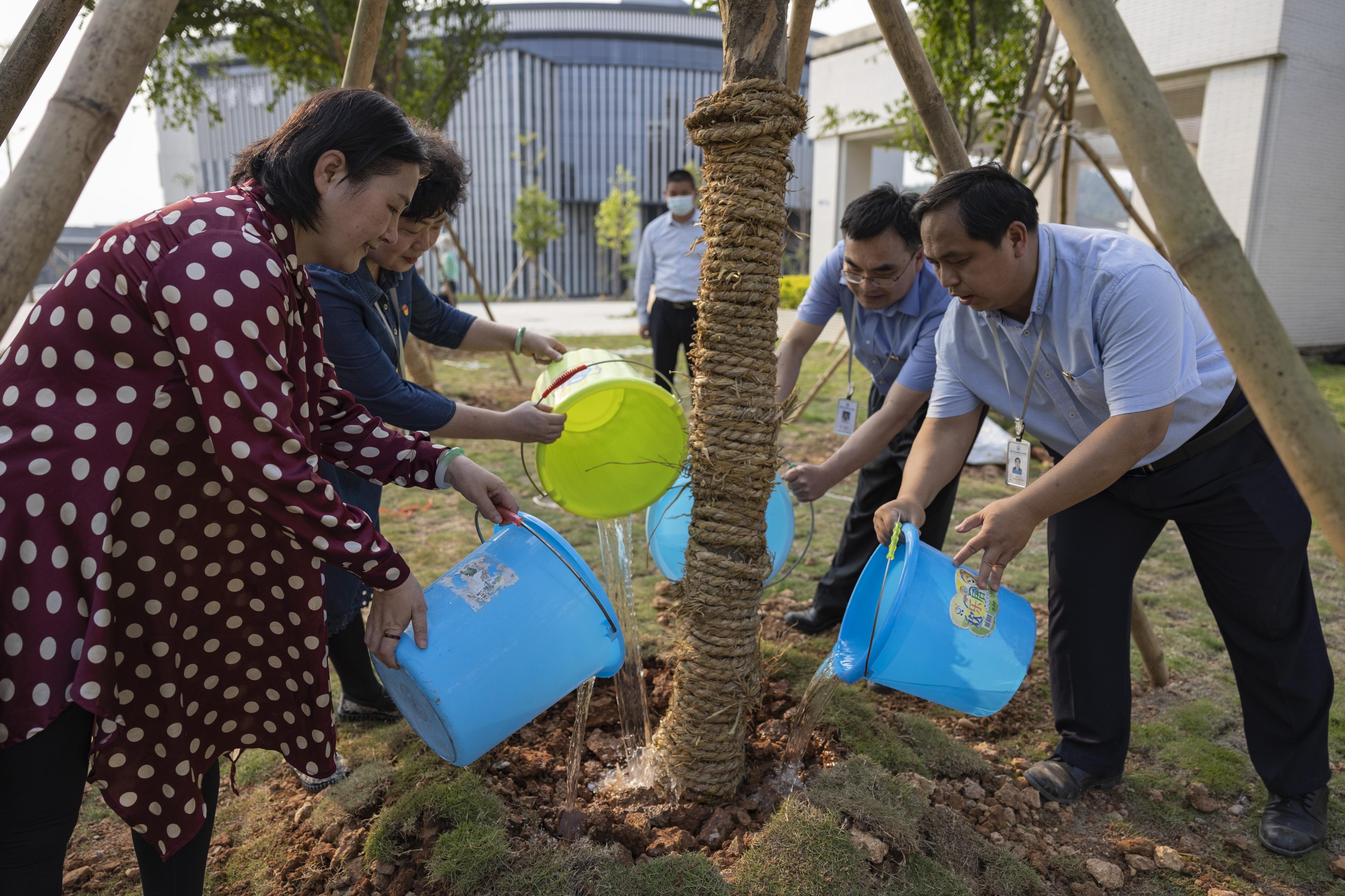 启动仪式后,开展义务植树活动,活动参与者集体在校园种下石榴树等树木。石榴是中国传统文化视为吉祥物,多子多福的象征。石榴果成熟后,多室多子,籽粒饱满,颗颗相抱,习近平总书记用“像石榴籽紧紧抱在一起”来比喻“各民族团结”,形象贴切、寓意深刻,饱含期望、意境深远。当前学校正处在爬坡过坎,奋力创建“双高”院校和本科试点院校的关键时期,我们要向习近平总书记说的那样“像石榴籽那样紧紧抱在一起”,同甘苦,共患难,风雨同舟,同心协力,和睦相处、和谐发展,这样才能实现学校的高质量发展。